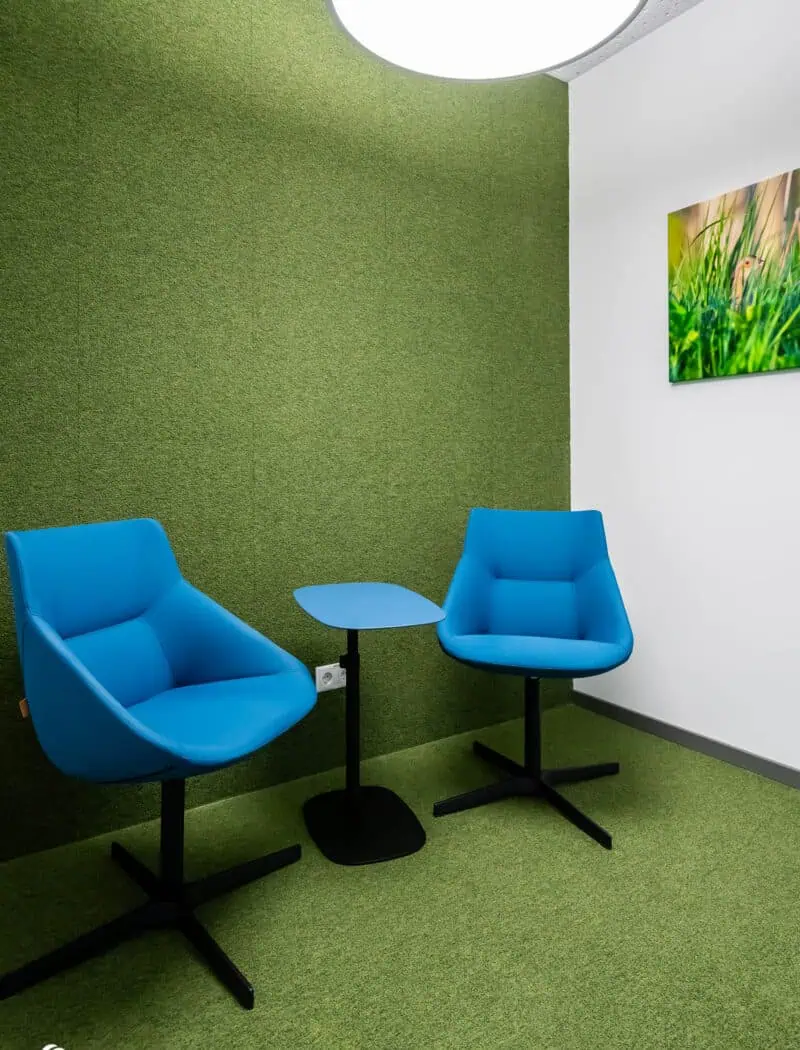 The project, which spanned two floors, focused on a clearly structured spatial layout where each zone – from work areas and meeting rooms to relaxation and collaboration spaces – was given a defined function and a carefully considered furniture solution. In selecting the furnishings, we prioritized employee well-being, ergonomics, freedom of movement, and visual balance.