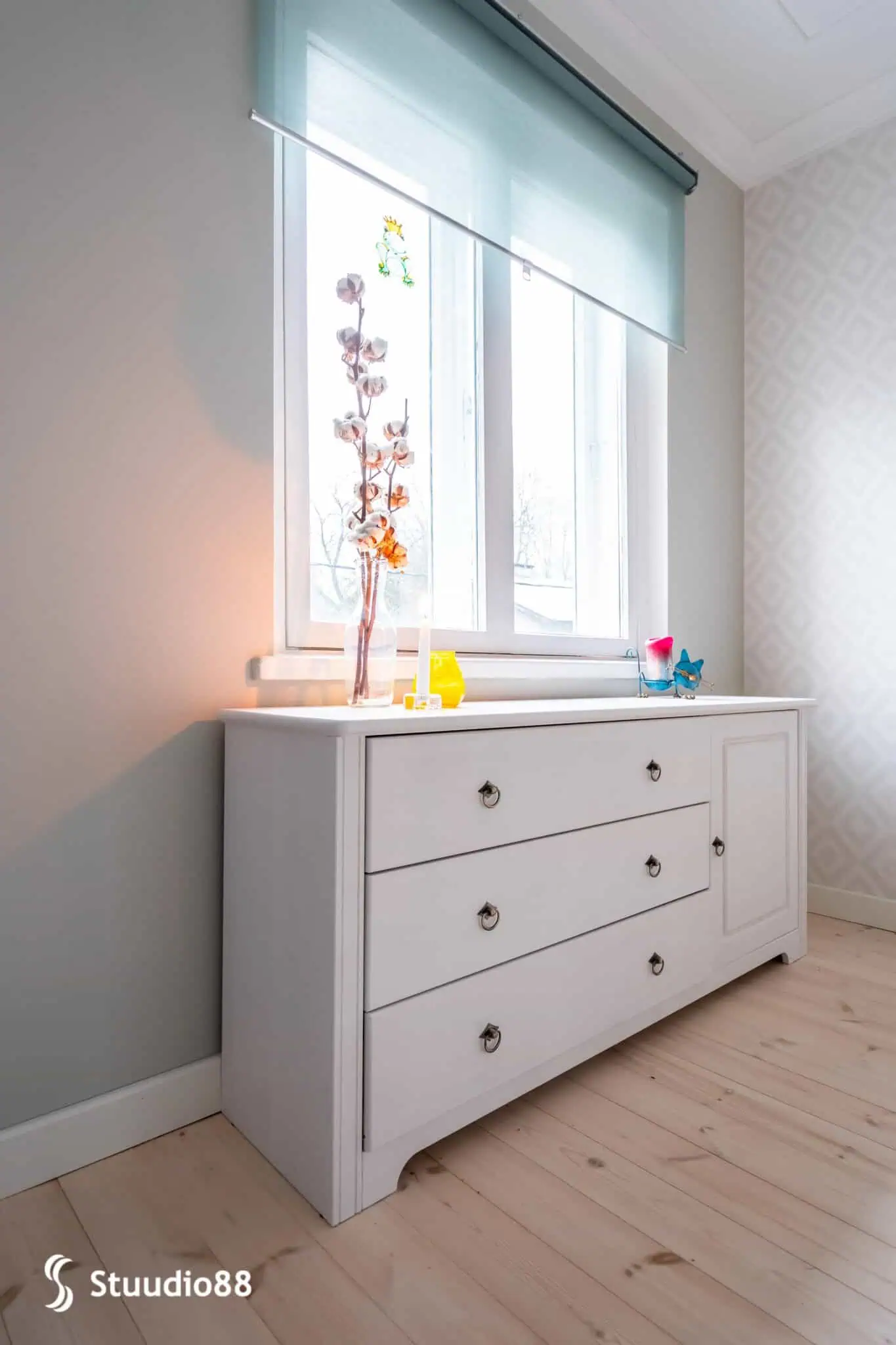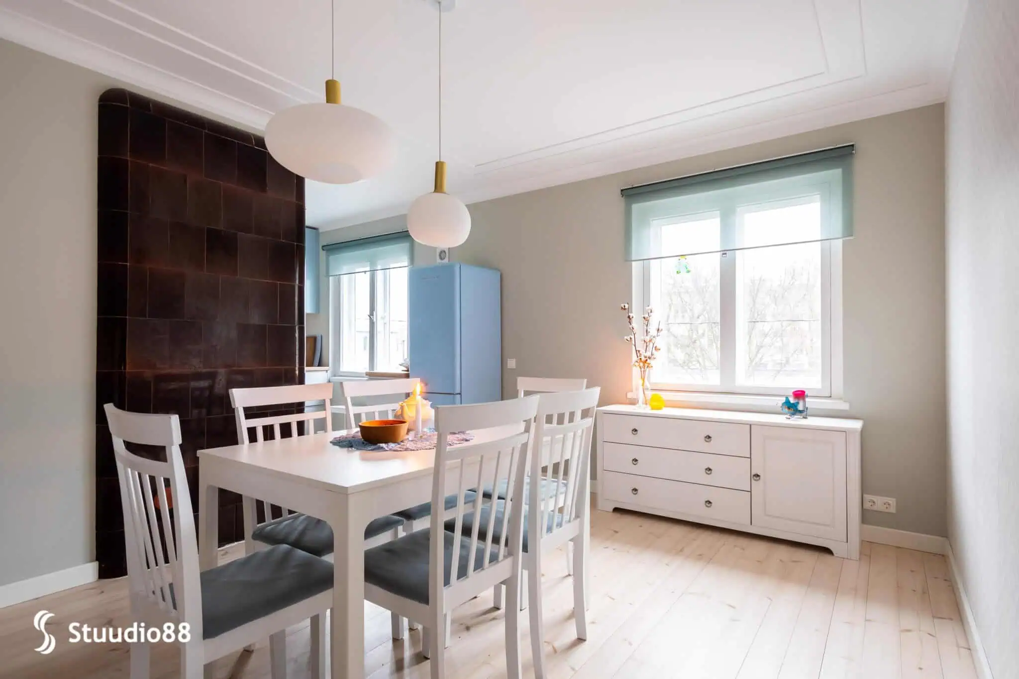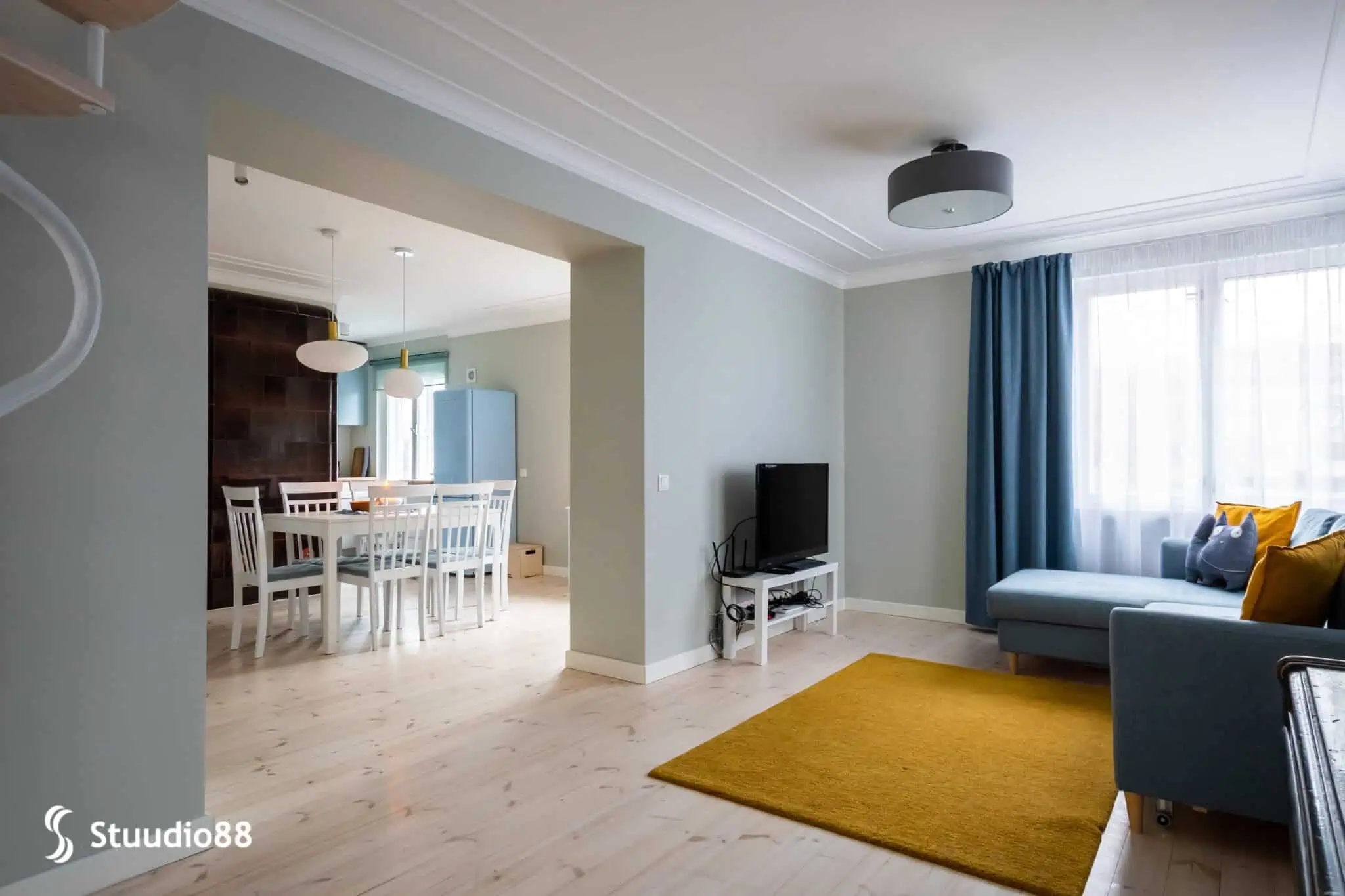 Apartment interior design with soft tones