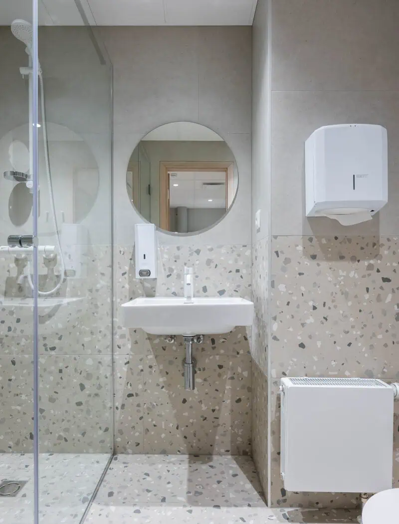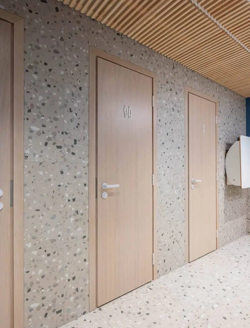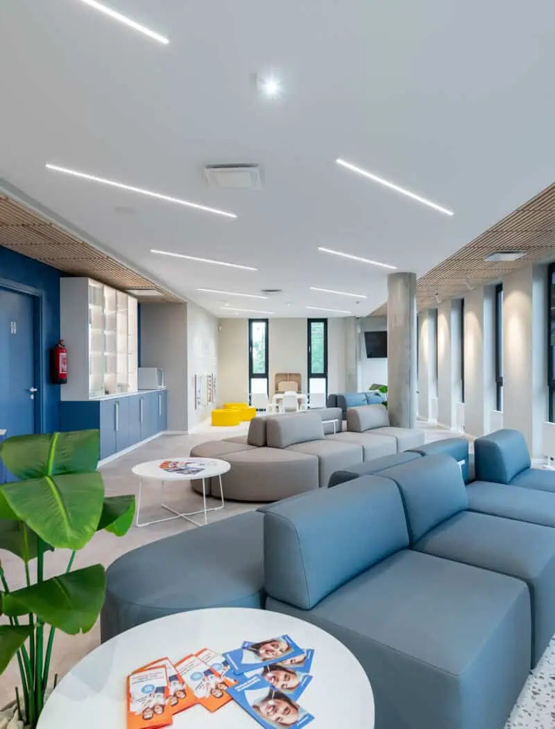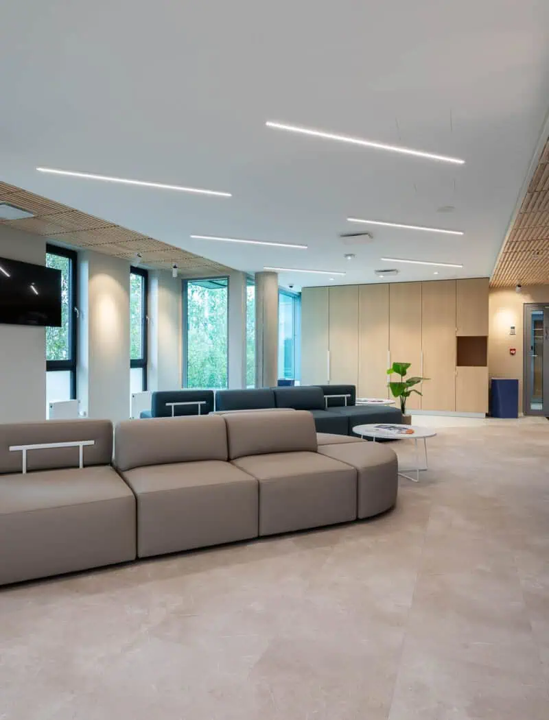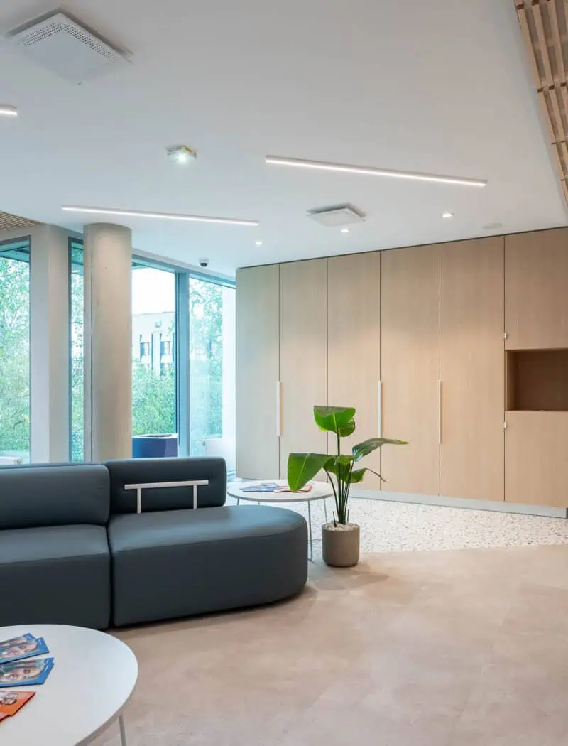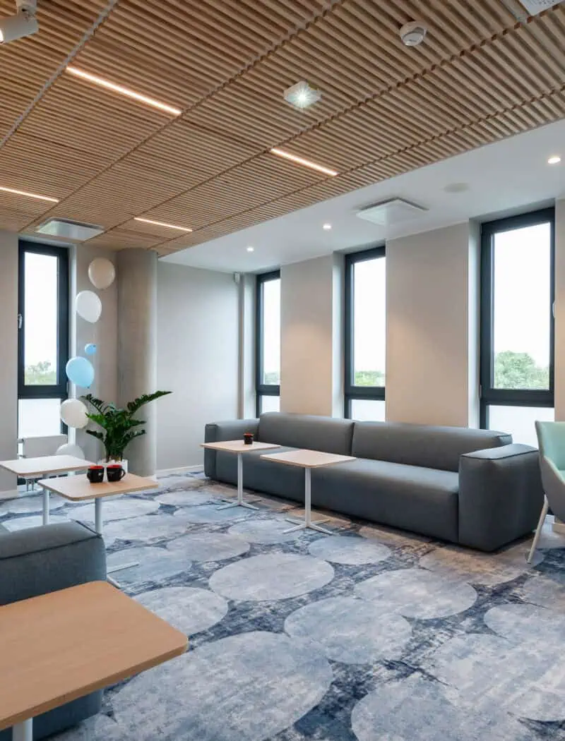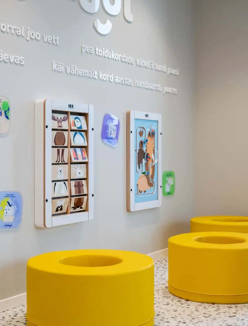 Avatud ootealad said looduslähedase ilme tänu puidust detailidele, samas kui pehmed, voolavad jooned ja rahustav murtud toonides värvigamma aitavad luua tervishoiuasutusele omase sooja ja kutsuva atmosfääri.