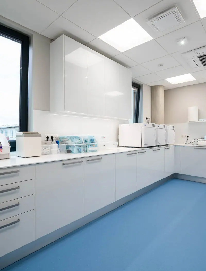 Mõlemal korrusel on eraldi sterilisatsiooniruumid, et tagada hambaarstide töö sujuvus ja efektiivsus.