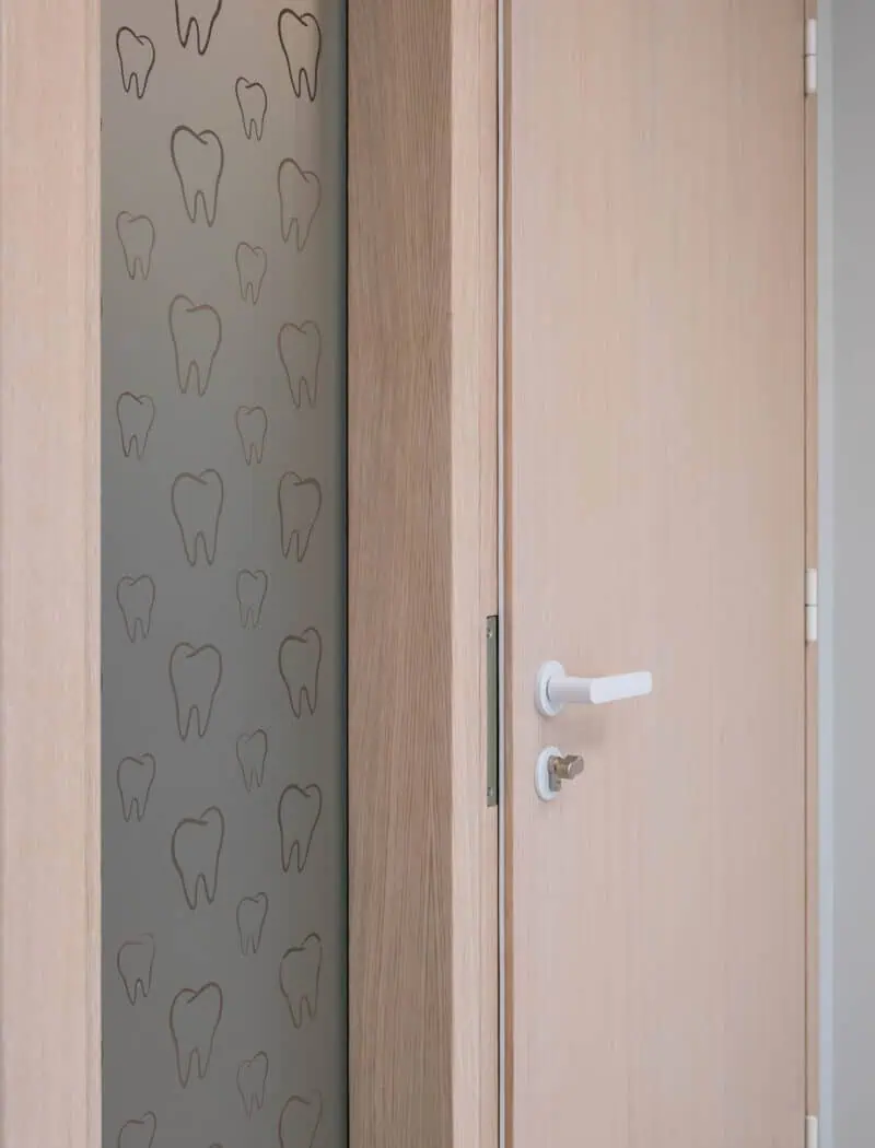 Valged detailid mängivad olulist visuaalset rolli, rõhutades puhtust ja professionaalsust, tuues esile kliiniku meditsiinilise olemuse. Need valged aktsendid sümboliseerivad täiuslikku, säravat naeratust, rõhutades nii kliiniku puhtuse standardeid kui ka teenuste kvaliteeti.