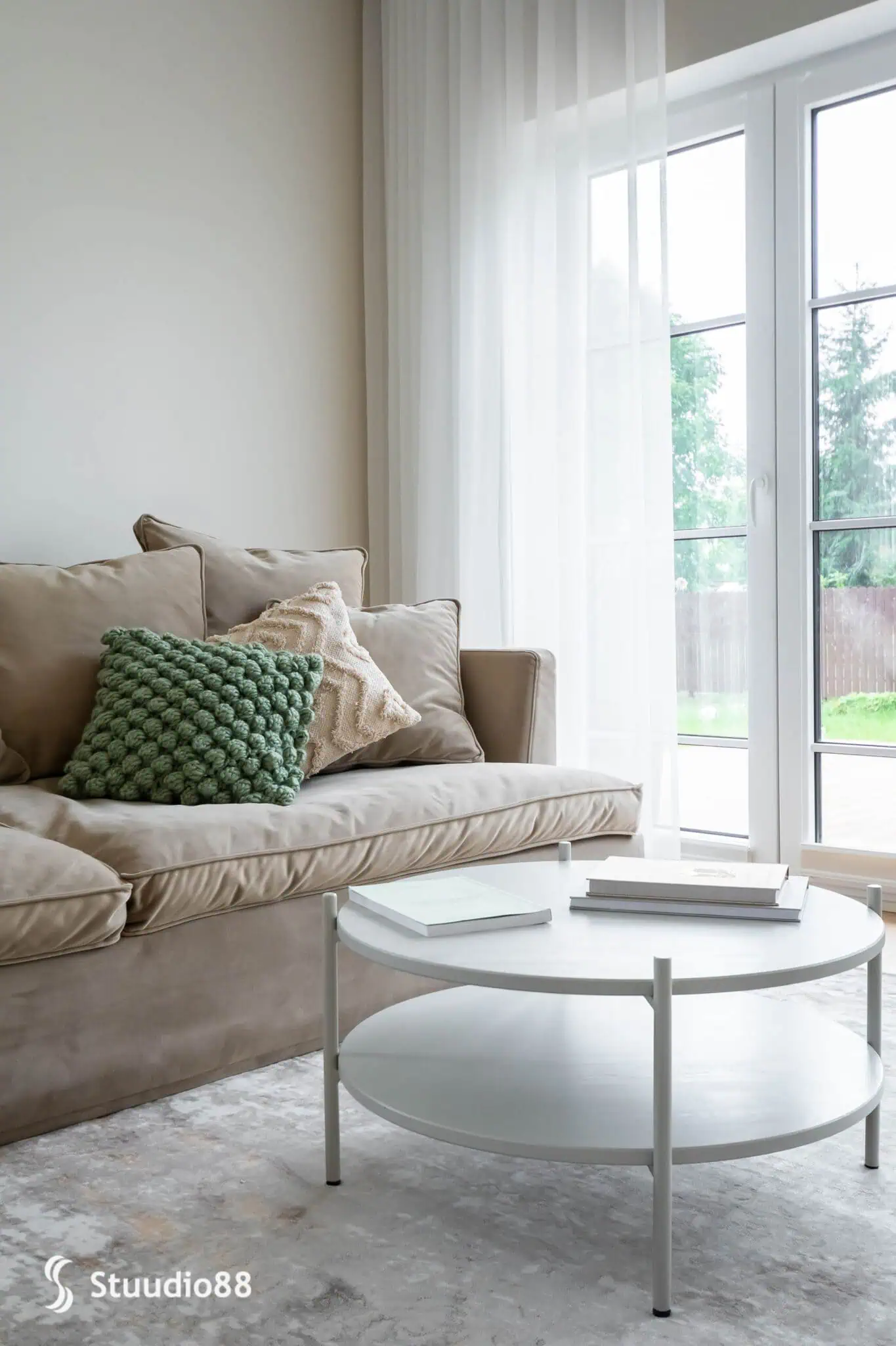 Sisekujunduse esimeses etapis on loodud alumise korruse sisekujundus, mille läbivateks toonideks on rahulikud looduslähedased toonid. Maja arhitektuurist ja pererahva soovidest tulenevalt loodud stilistika on segu klassikast ja modernsusest.