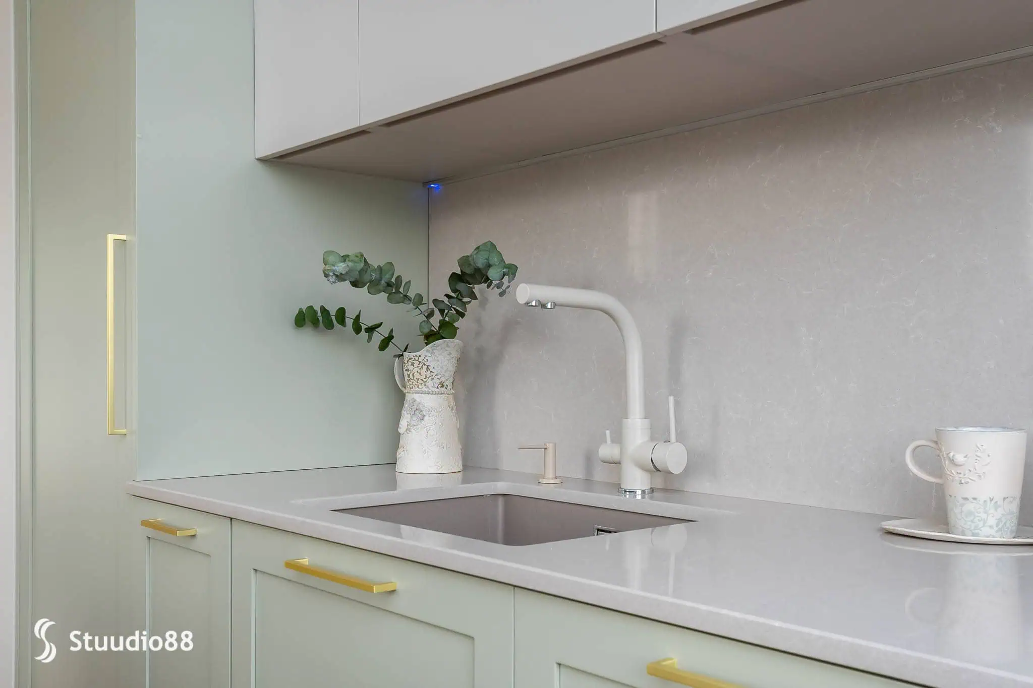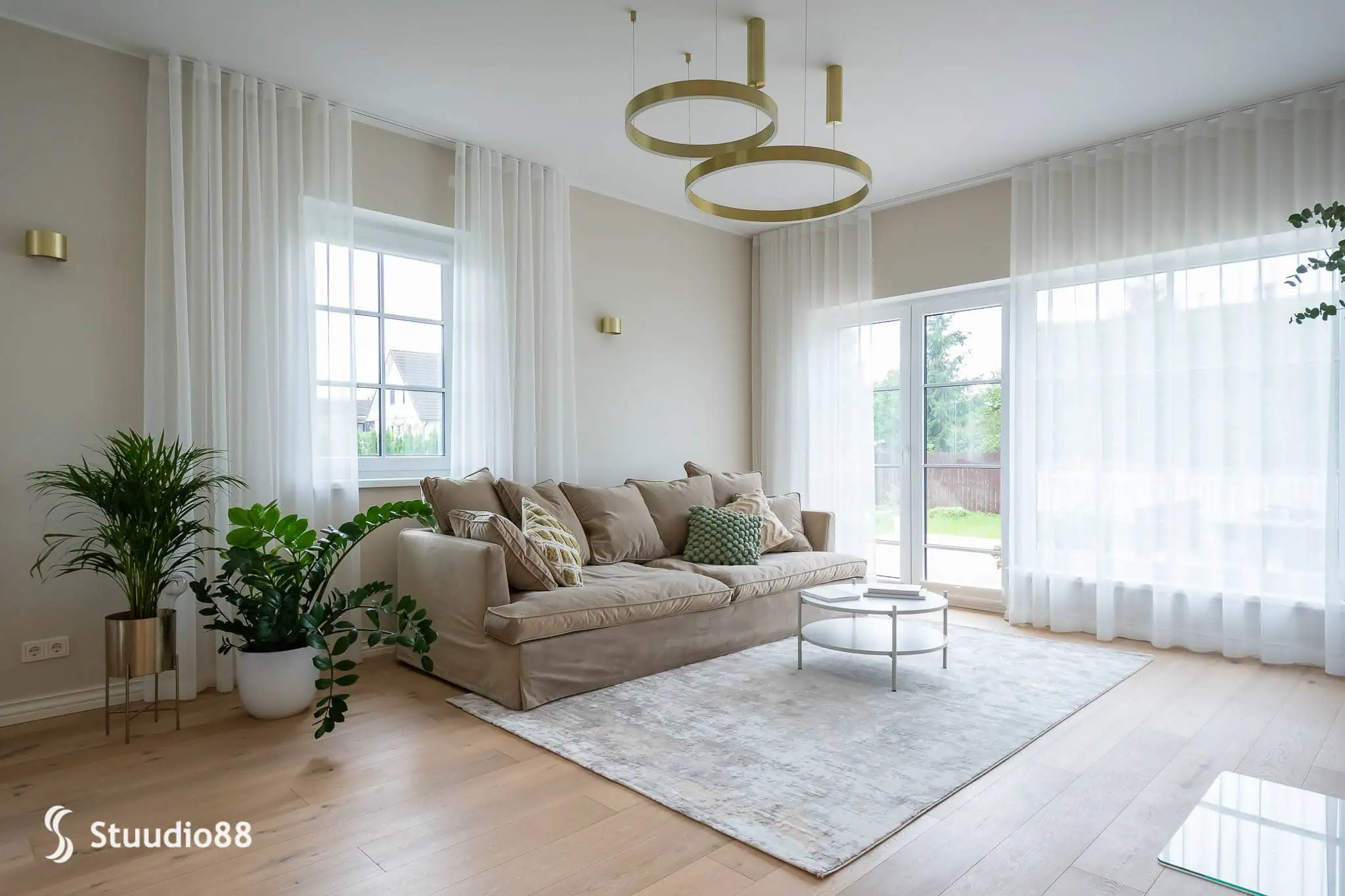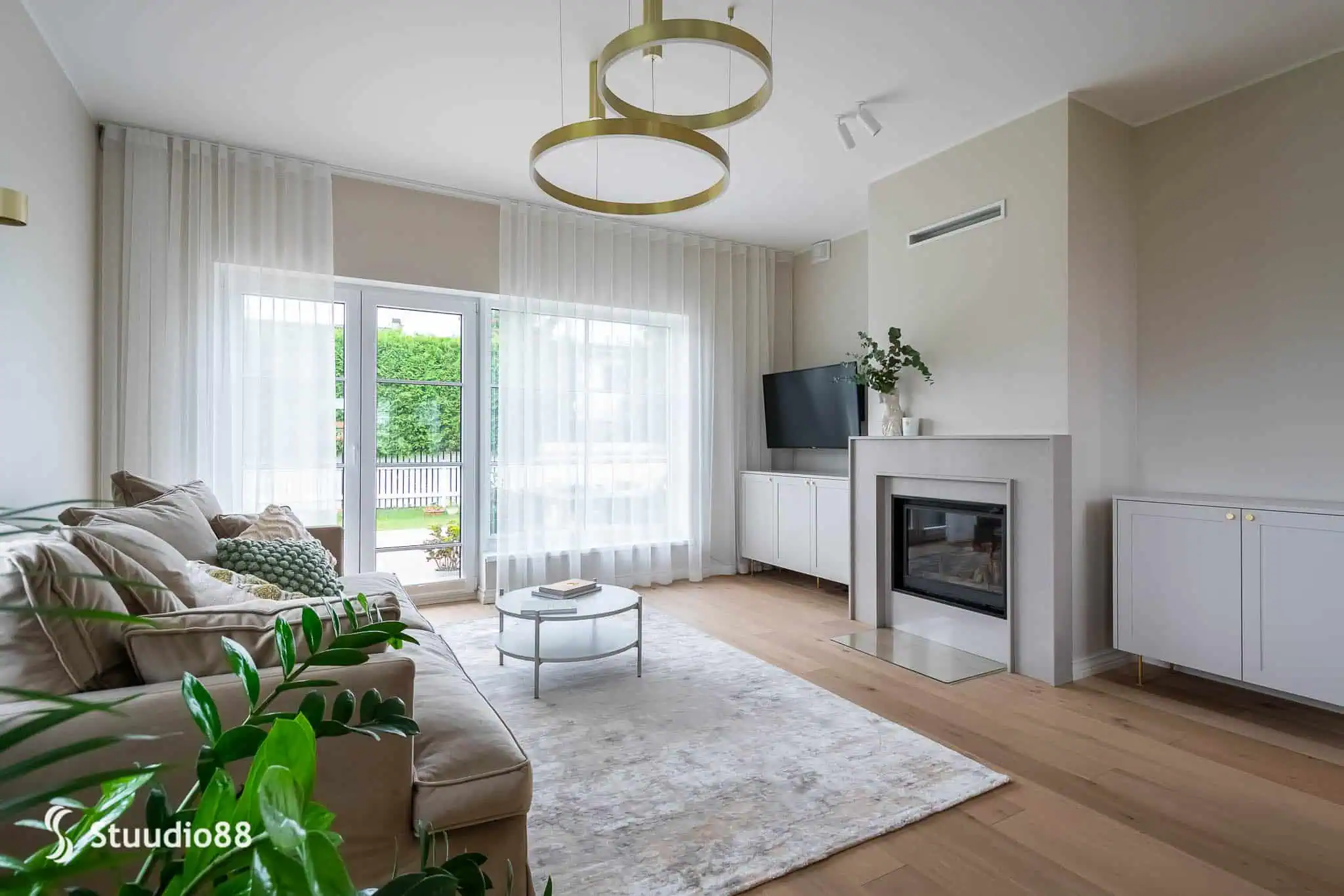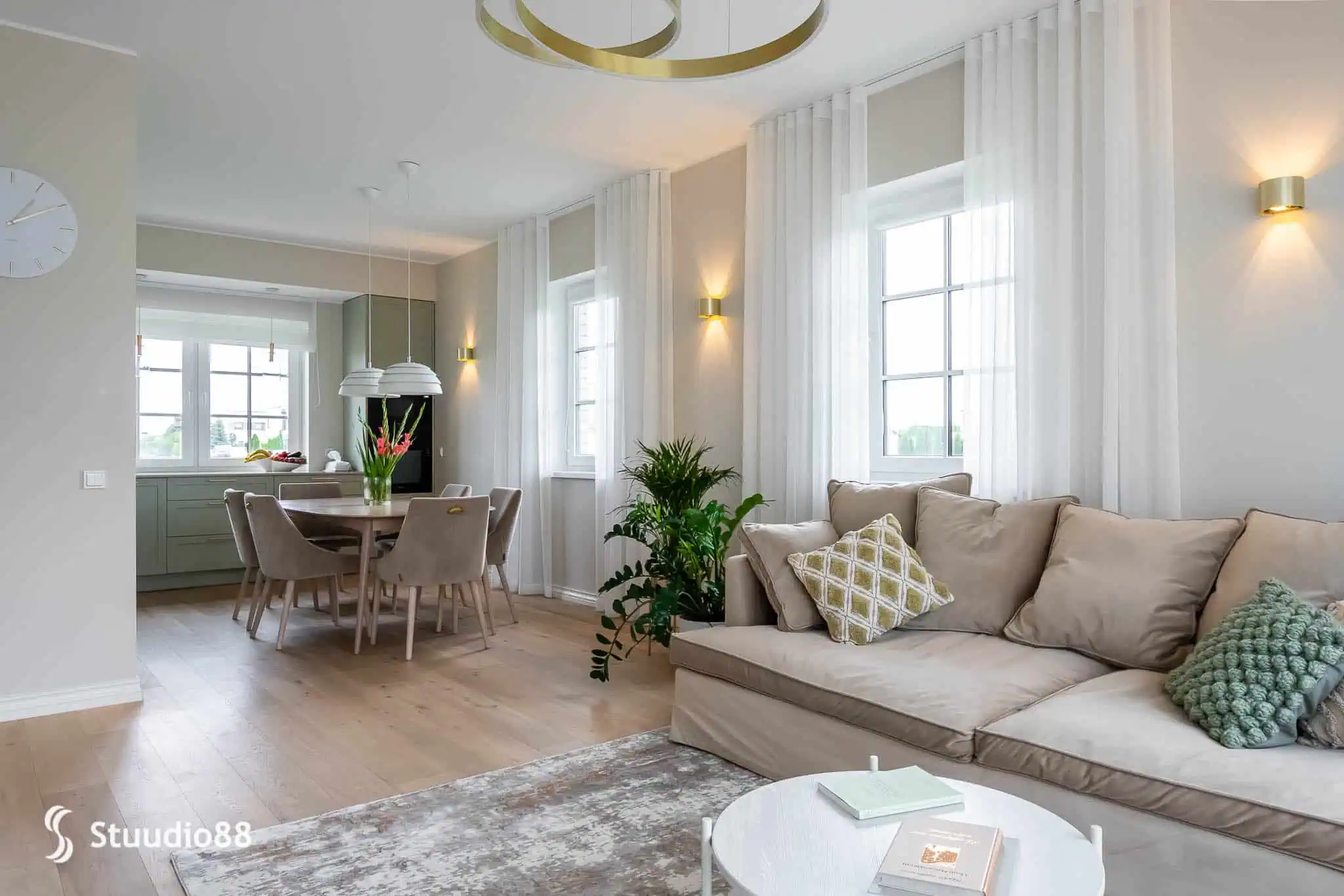 Sisekujunduse esimeses etapis on loodud alumise korruse sisekujundus, mille läbivateks toonideks on rahulikud looduslähedased toonid. Maja arhitektuurist ja pererahva soovidest tulenevalt loodud stilistika on segu klassikast ja modernsusest.