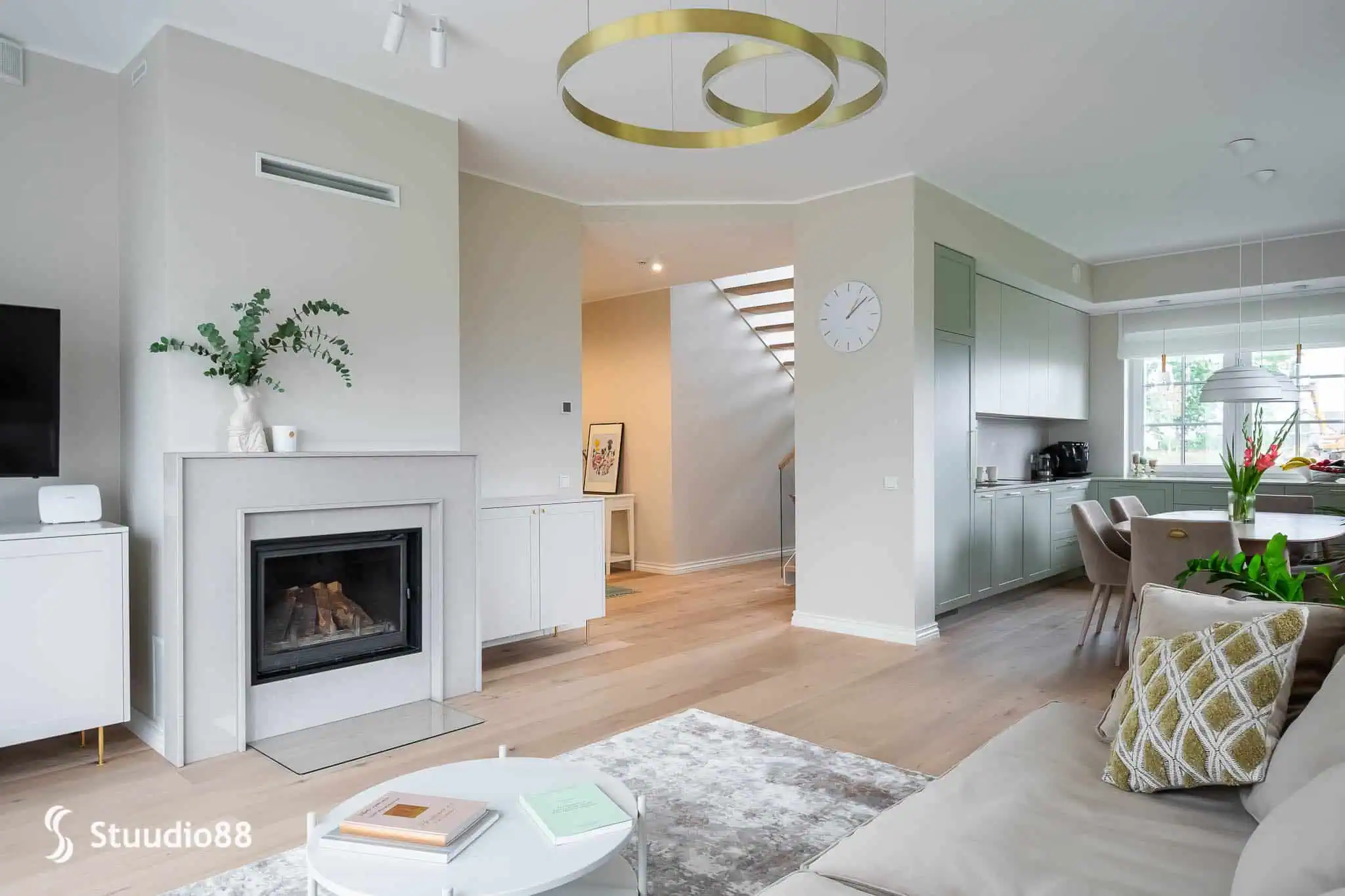 Terviklahendusena valminud eramu 1. korruse sisekujundus autori järelevalvega.